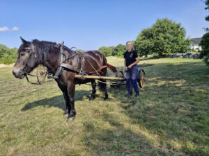 Vi har flera ben att stå på precis som hästarna eftersom vi också ägnar oss åt att använda slåttermaskin med häst och hästräfsa för att hålla efter ängar på gammalt vis vid Ekerum, Arontorp, Abbantorp och Albrunna på uppdrag av länsstyrelsen i Kalmar.