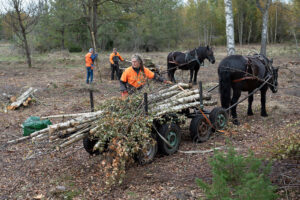 Våra arbetshästar används framförallt till skogsbruk, landskapsvård och odling. På uppdrag av Länsstyrelsen i Kalmar genom upphandling har vi genomfört flera uppdrag. Dessa har inneburit att vi gallrat i naturreservat för att främja tillväxten av tidigare trängda och skuggade träd. Detta har också skapat förutsättningar för att det blir en grässvål där det tidigare växte en snårskog av hagtorn.