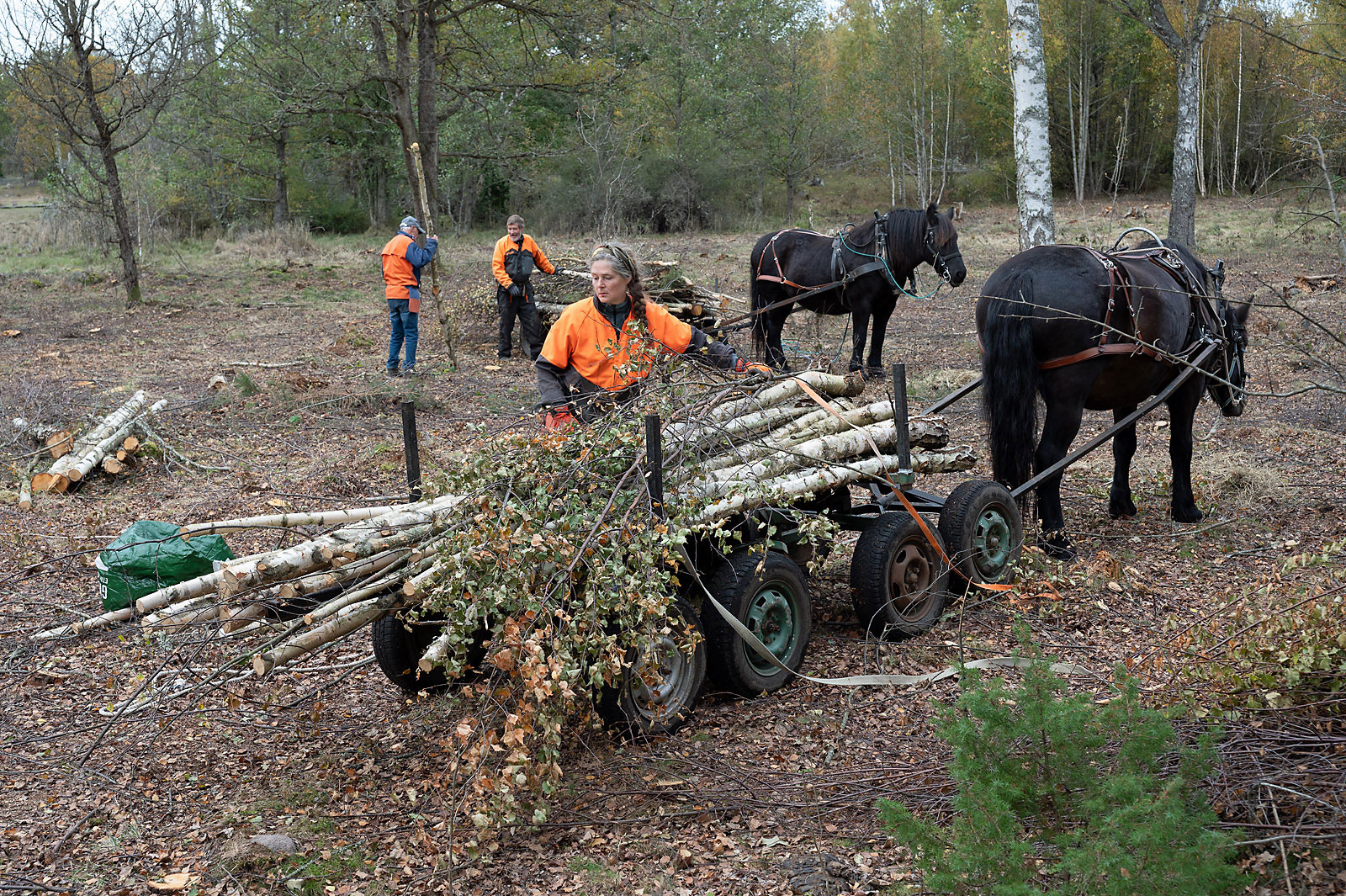Hösten lämpar sig bra för fysiskt arbete i skogen med lagom arbetstemperatur och utan insekter som plågar hästarna. Jag vill också upplysa om att det finns en förening som heter ”Sveriges hästkörare” med tusen medlemmar och som ger ut en tidskrift ”Moderna hästkrafter”.