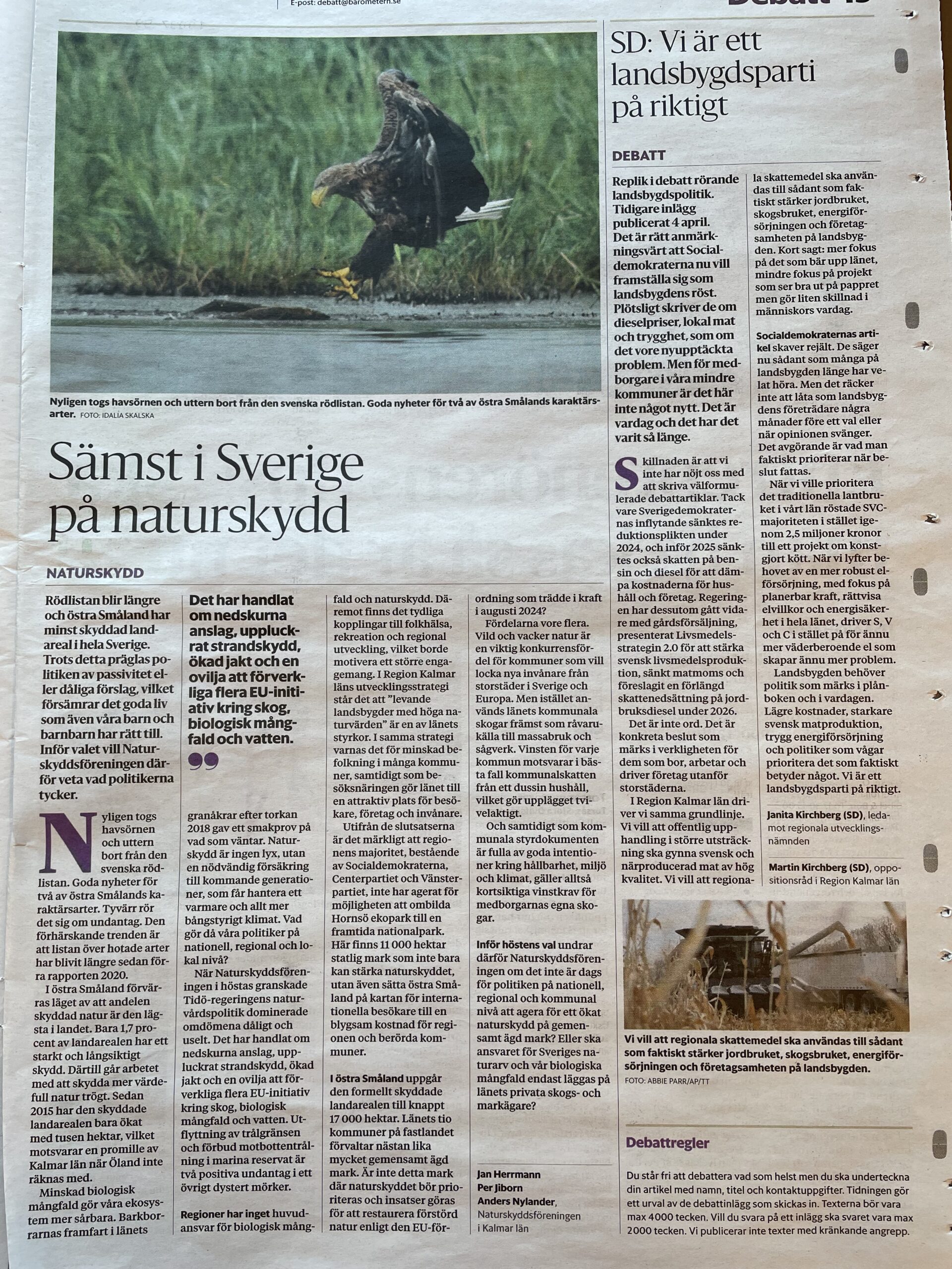 Ett sätt att förhoppningsvis påverka åt rätt håll är att skriva debattartiklar och insändare. En första från Länsförbundet med tydligt fokus på valet publicerades idag i Barometern, se nedan. Dess budskap att Kalmar län, exkl. Öland, är sämst i hela Sverige på att skydda naturen (!), presenteras lite mer på https://kalmar-lan.naturskyddsforeningen.se/2026/04/17/samst-i-sverige-pa-naturskydd-vad-svarar-politikerna/